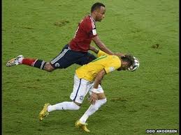 Shoves,late tackles,sliding studs high challenges and shirt pulling predominated. Neymar's foul was actually a retaliation for his sides continued flagrant and unpunished infringements.